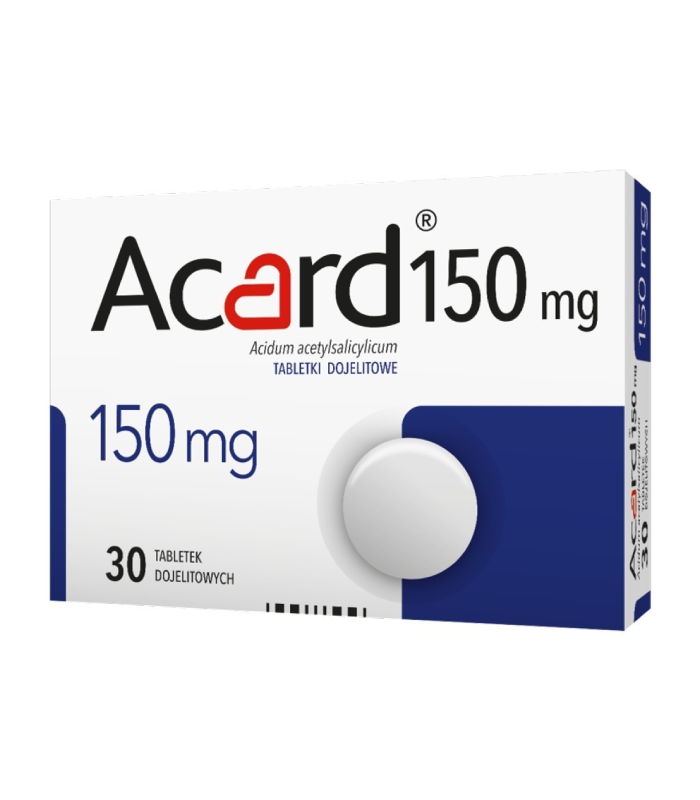 Acard 150 mg – produkt leczniczy zawierający kwas acetylosalicylowy, który hamuje zlepianie się płytek krwi.
