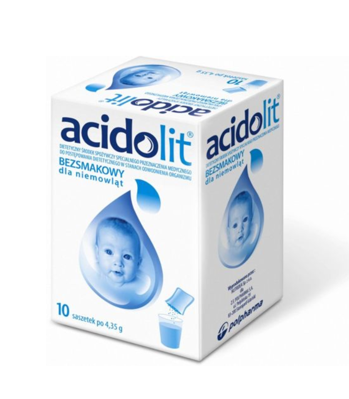 Acidilit to żywność specjalnego przeznaczenia medycznego. Do postępowania dietetycznego w stanach zwiększonej utraty wody oraz składników mineralnych w organizmie.Stosuje się w celu uzupełniania płynów oraz składników mineralnych w organizmie zarówno podczas biegunki jak i biegunki połączonej z wymiotami. Chroni organizm przed nadmierną utratą wody i cennych składników mineralnych.