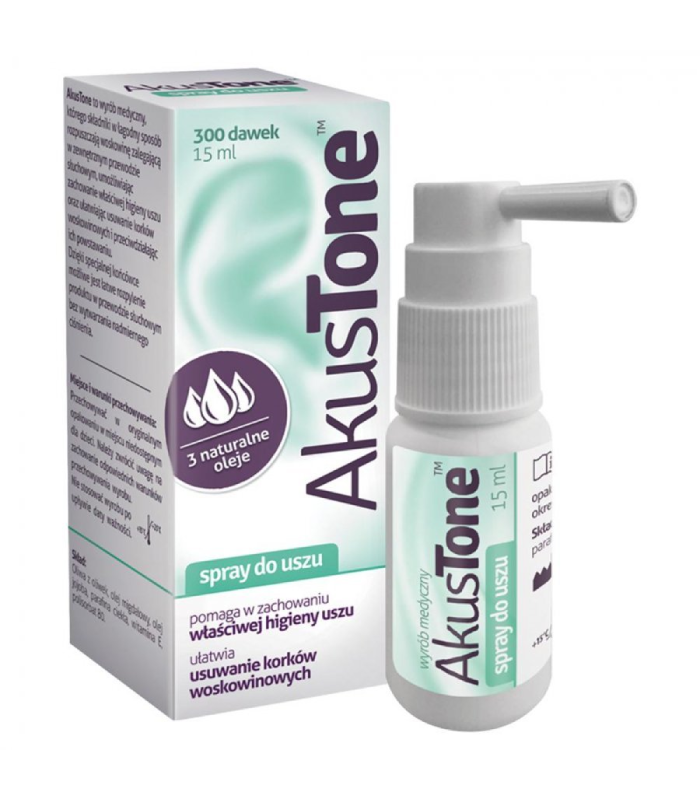 AKUSTONE spray do uszu skład: : oliwa z oliwek, olej migdałowy, olej jojoba, parafina ciekła, witamina E, polisorbat 80.