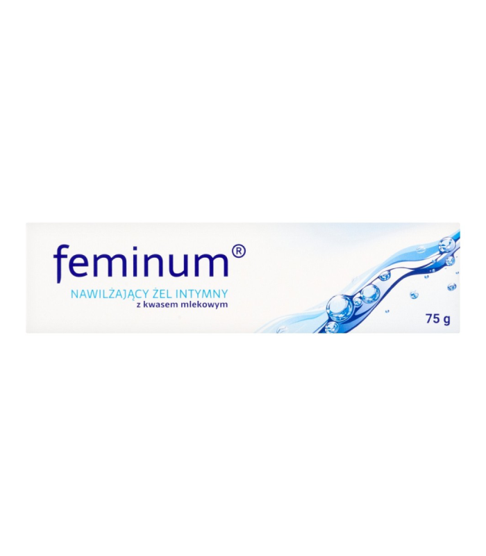 Feminum żel:Nawilżający żel intymny to wyrób medyczny zawierający kwas hialuronowy, który chroni przed otarciami prowadzącymi często do infekcji pochwy i zewnętrznych narządów płciowych kobiet. Łagodzi objawy niedoboru wydzielania śluzu w pochwie, nie zaburzając równowagi hormonalnej organizmu nawet przy długotrwałym stosowaniu.