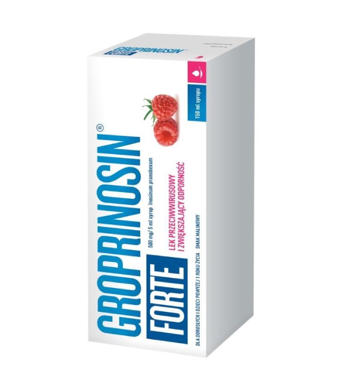 Syrop Groprinosin Forte to lek przeciwwirusowy oraz zwiększający odporność organizmu. Można go stosować jako środek pobudzający czynność układu odpornościowego u pacjentów z nawracającymi infekcjami górnych dróg oddechowych. Wskazaniem do podawania syropu jest także leczenie opryszczki pospolitej u osób z rozpoznanym zakażeniem tym wirusem (Hepares simplex). Groprinosin Forte jest przeznaczony dla osób powyżej 1 roku życia.