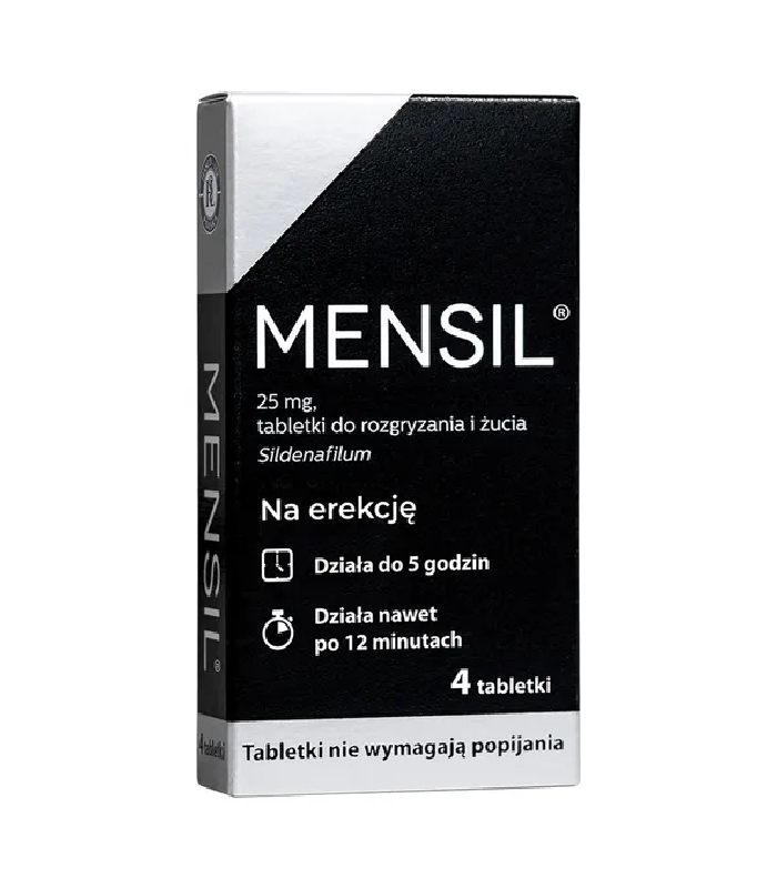 Mensil to produkt leczniczy stosowany w leczeniu zaburzeń wzwodu u dorosłych mężczyzn. Mensil zawiera substancję czynną sildenafil, który należy do leków z grupy inhibitorów fosfodiesterazy typu 5 (PDE5). Lek działa poprzez wspomaganie rozkurczu naczyń krwionośnych w prąciu, zwiększając napływ krwi do prącia podczas podniecenia seksualnego. Sildenafil pomaga osiągnąć wzwód jedynie pod warunkiem uprzedniego pobudzenia seksualnego.